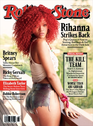 Uh, you forgot the rest of your pants Rihanna. Here's the April cover of Rolling Stone. There are two different covers, so, beware! I hate when I'm traveling and I buy ELLE 6 different times because they put different people on the cover. I get to page 60 and realize...hey...I've already this! 5 other times.