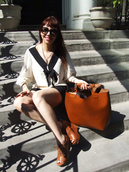 I was wearing: Top: Tibi, Shorts: Topshop, Bag+ Shoes: Zara, Sunglasses: Balenciaga.